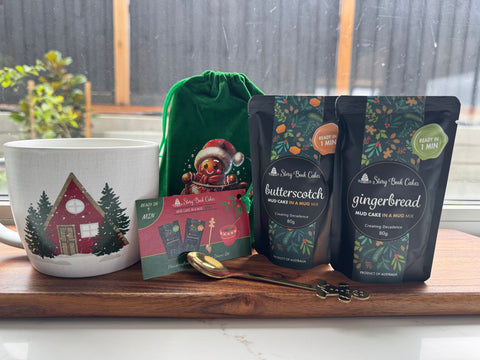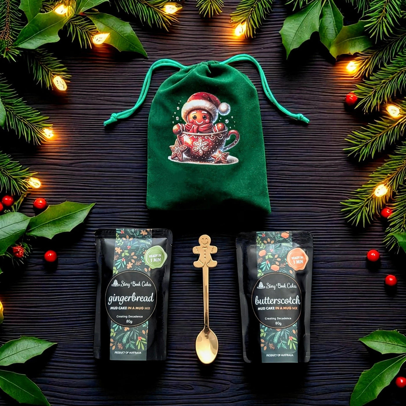Christmas Mud Cake In A Mug x 2 With Gold Spoon In Gift Bag With Mug Sale