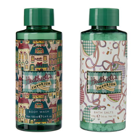 A celebration of whimsy and festive self-care, the Heathcote’s Emporium Christmas Collection is made for magical gifting. Brimming with charm, colour, and seasonal spirit, each piece pairs luxurious self-care with a dash of nostalgia - think cracker-shaped bath bombs, robin-topped tins, and bell-inspired bath treats. Beautifully packaged and perfectly sized for stockings or Secret Santa surprises, this collection transforms holiday giving into a moment of joy, indulgence, and delight. Inspired by the tradition of Christmas shopping, this collection features hand-painted illustrations of cobbled streets and shop windows festooned with baubles and velvet bows. It stars dogs and cats in cosy jumpers, all wrapped up with festive gingham ribbons. Scented with calming eucalyptus, lavender, and patchouli essential oils, complemented by notes of fresh green leaves, delicate lily of the valley, and warm sandalwood.